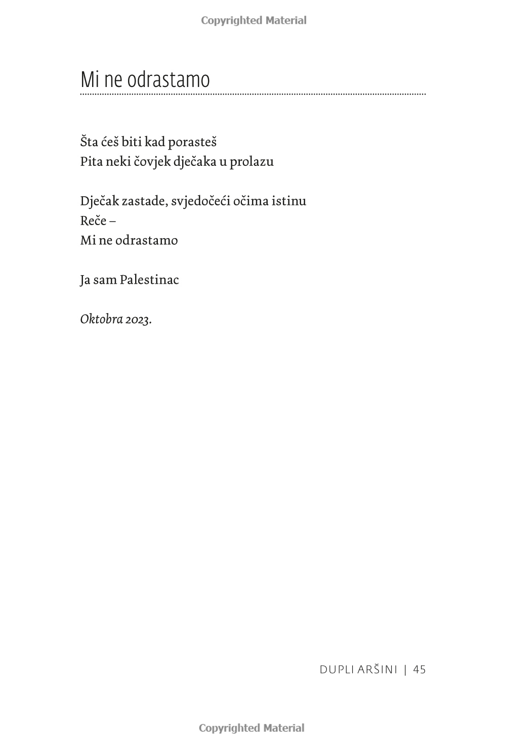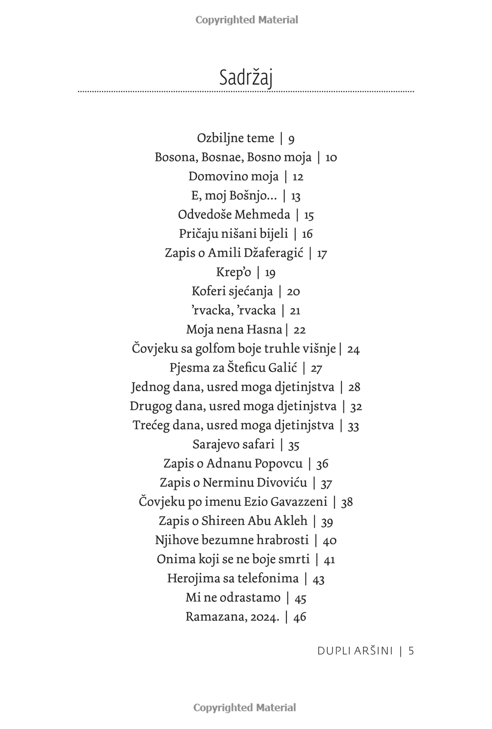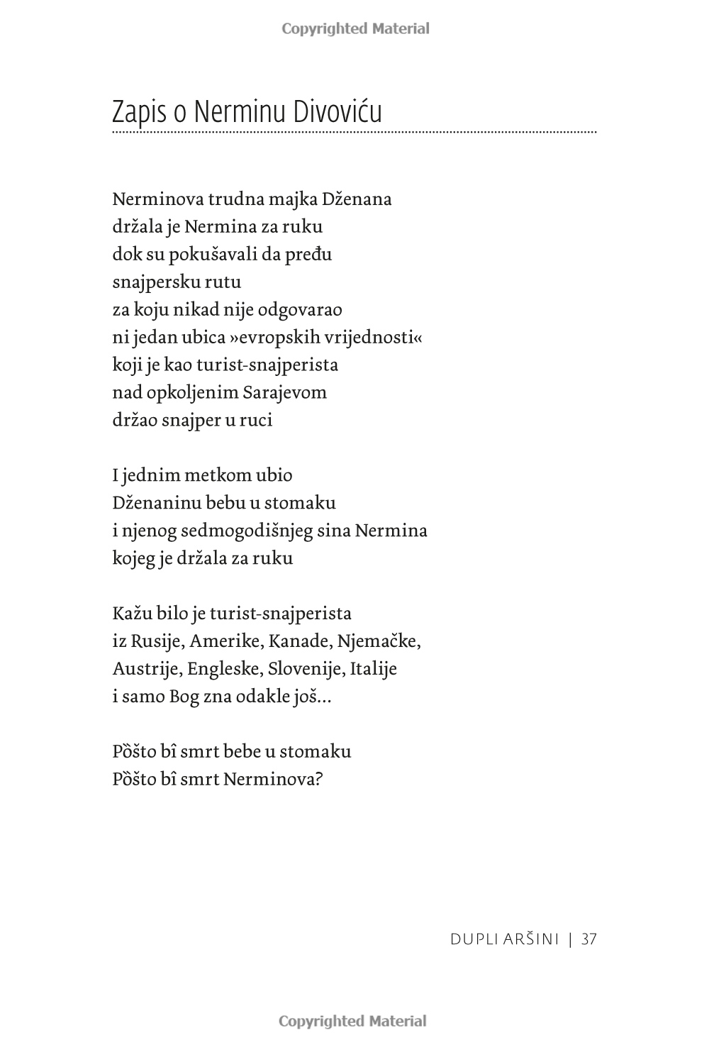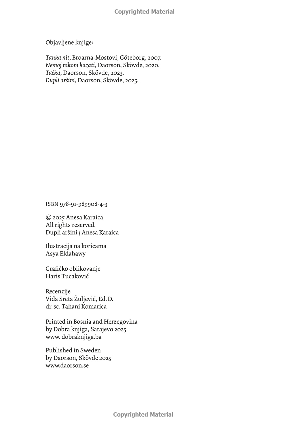 ”Verkligen allvarliga ämnen, och det är just titeln på den första dikten som författaren Anesa Karaica väljer att inleda sin diktsamling med. Kanske finns det i dessa korta liv inget allvarligare ämne än det globala hyckleri som omger oss i nästan varje ögonblick av våra liv. Lyckliga är de som har verkliga stunder av vila som ger dem en moralisk norm.